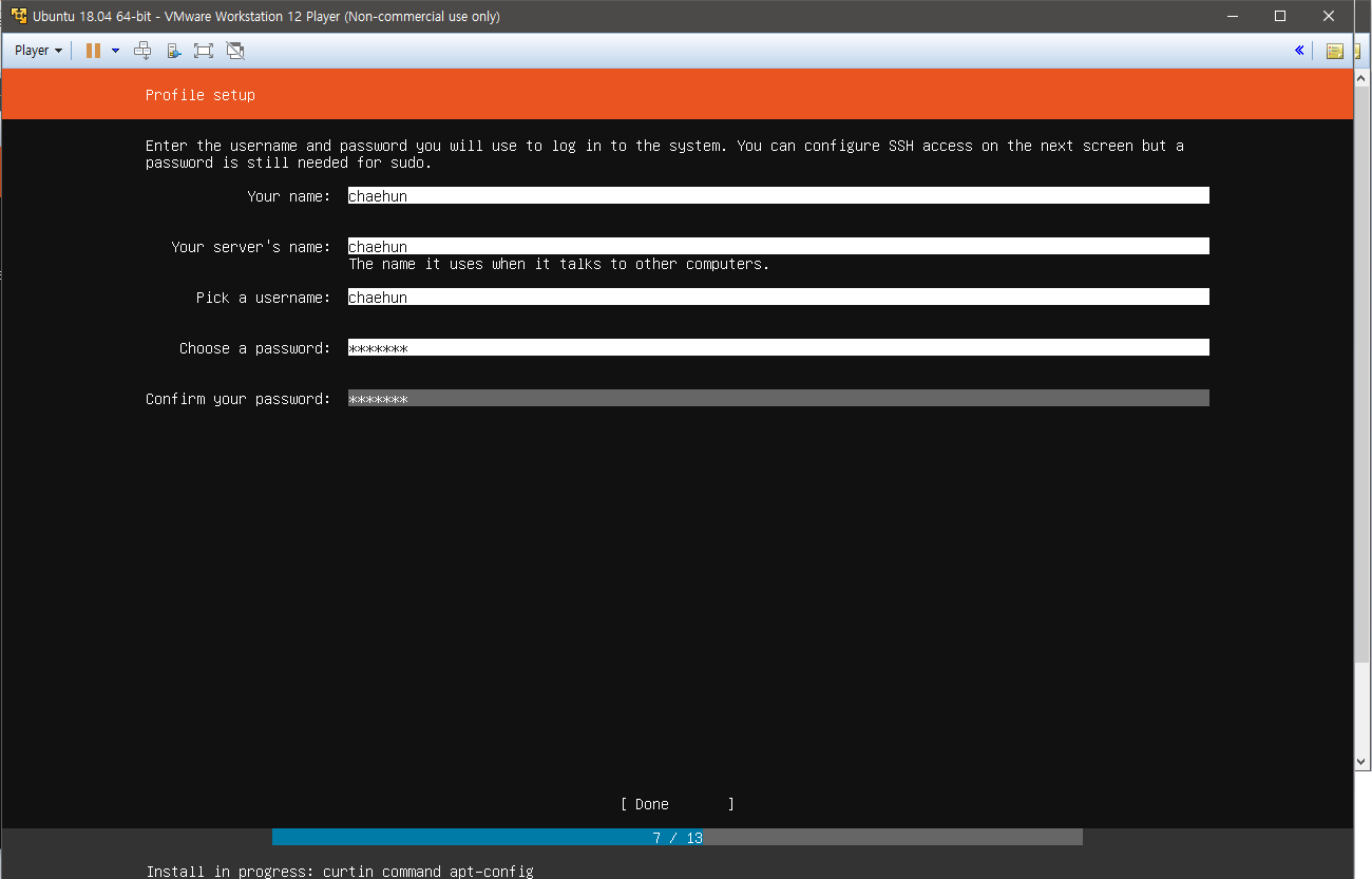 20. OS가 부팅되는 과정이고 완료되면 설치할때 입력했던 계정정보로 로그인을 합니다.