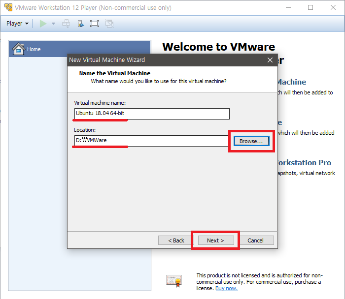 저는 임의로 D드라이브에 VMWare라는 폴더를 생성해줬습니다.