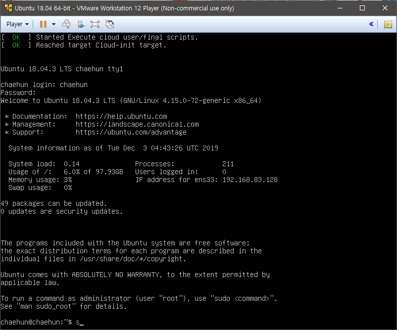 2019/12/03 - [OS/Ubuntu] - [Linux] Window 운영체제에서 VMWare 가상머신 설치하기 (VMWare 가상머신에 Ubuntu 18.04 LTS 기반의 웹서버 구축하기 - 1장)
