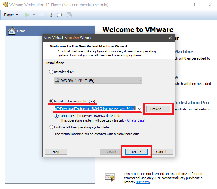 3. 해당 ISO 이미지 파일을 갖다가 VMWare에서 우분투 OS 설치