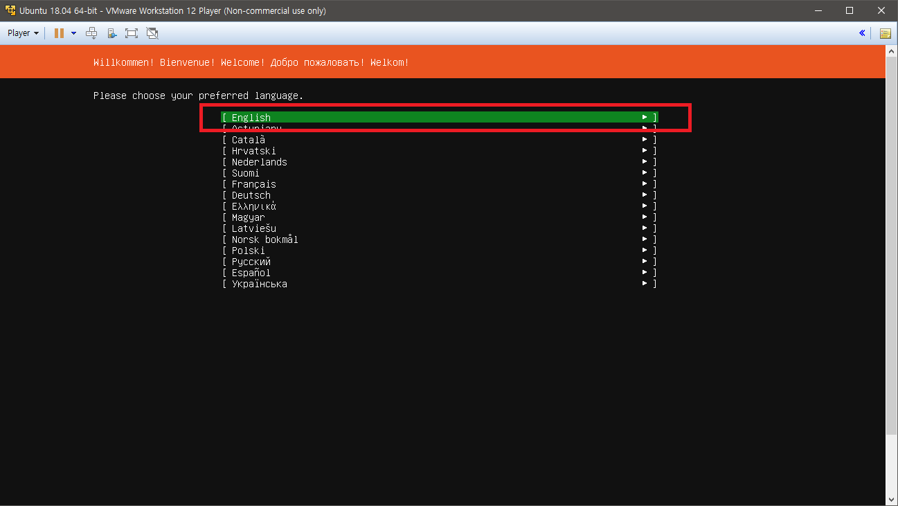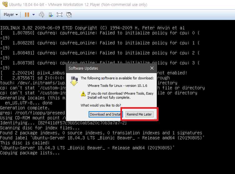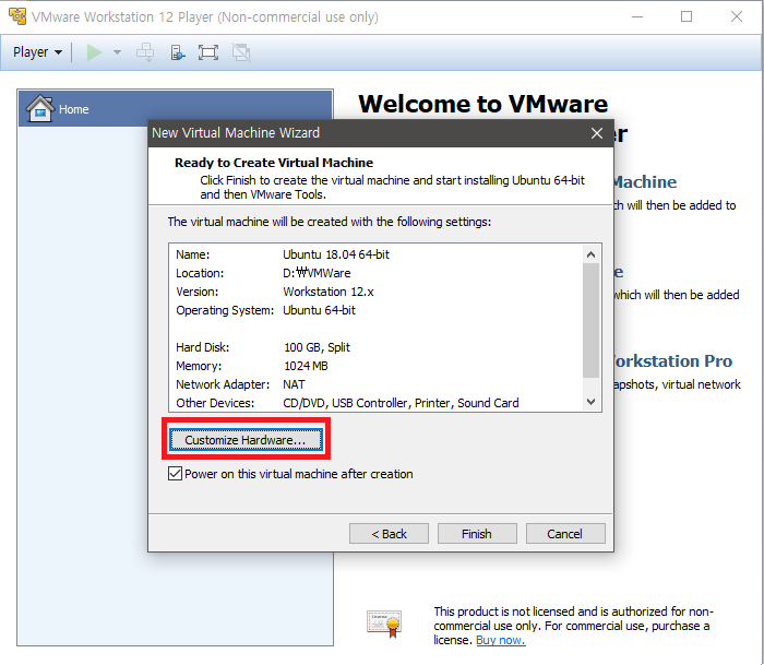 VMWare상에서의 가상머신에 관련된 설정은 여기까지이고 아래에서부터 실제로 Ubuntu ISO 이미지 파일을 통해
