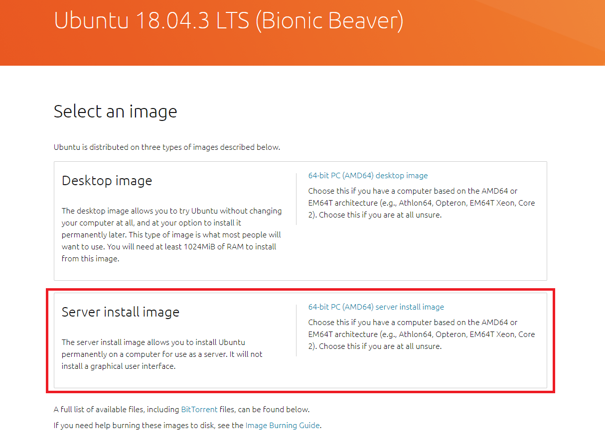 1. 아래의 화면에서 Server Install Image를 다운로드 받습니다.