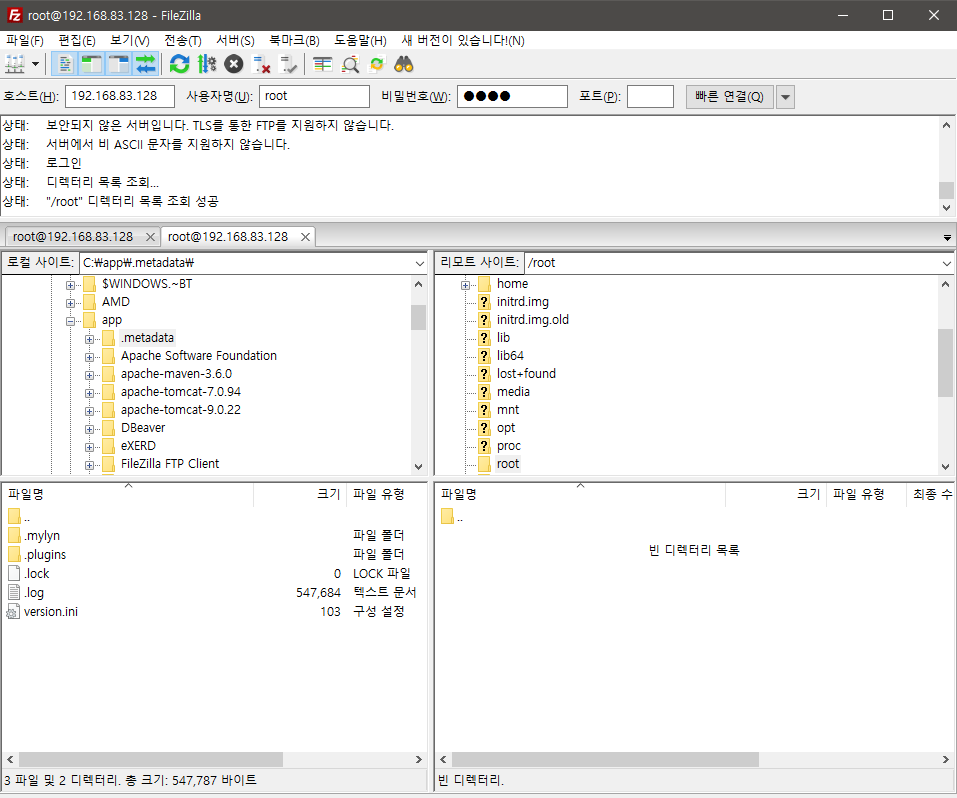 # FileZila FTP 클라이언트를 이용한 접속 확인