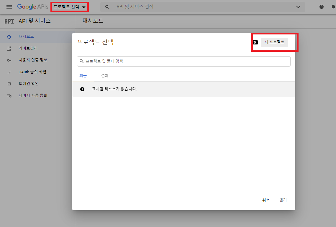 1. Google APIs 신규 프로젝트 생성 및 개발환경 구성