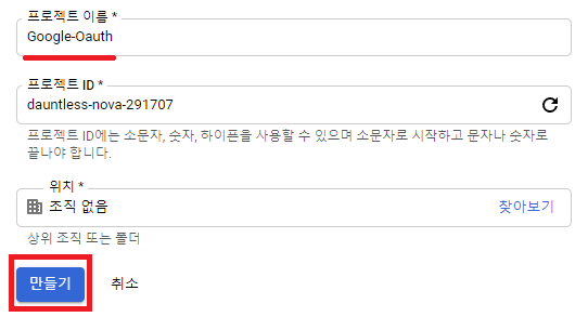 - Google APIs 신규 프로젝트 생성 및 개발환경 구성