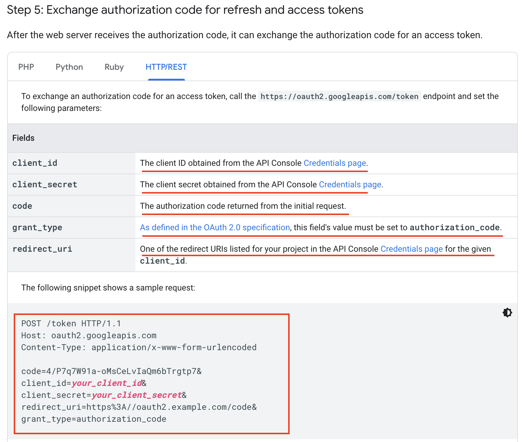 - Reference - Step 5. Exchange authorization code for refresh and access tokens