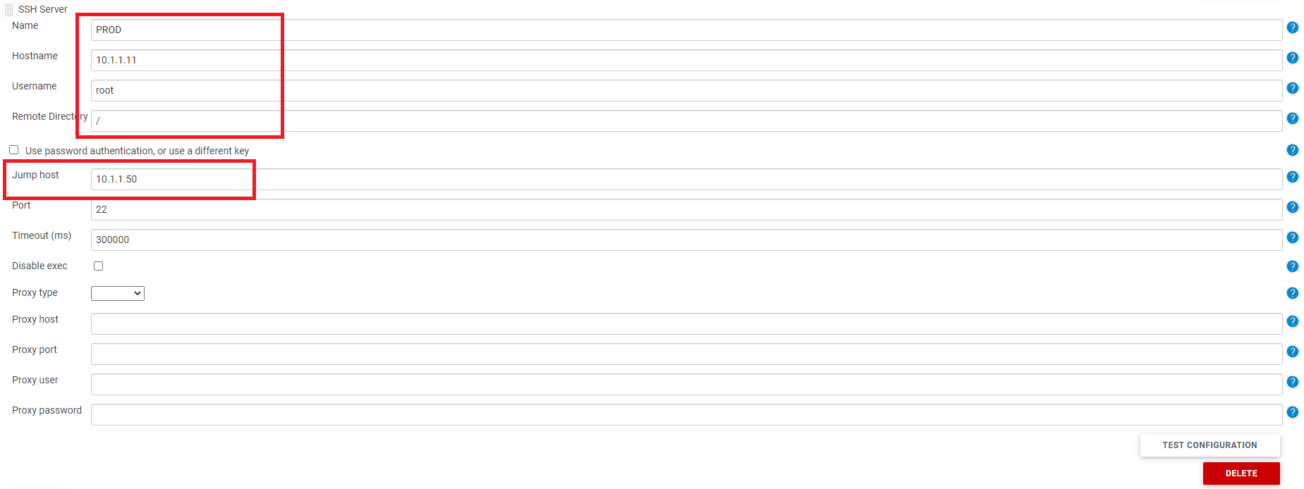 etc(dmz)에서 prod(priv)에 SSH 접속을 위하여 Jump Host를 etc(priv)로 설정해주었습니다.