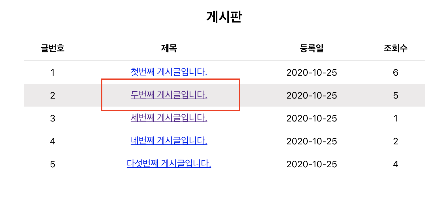 여기서는 게시글을 클릭했을때 게시글 상세 페이지로 이동하도록 구현을 하도록 하겠습니다.