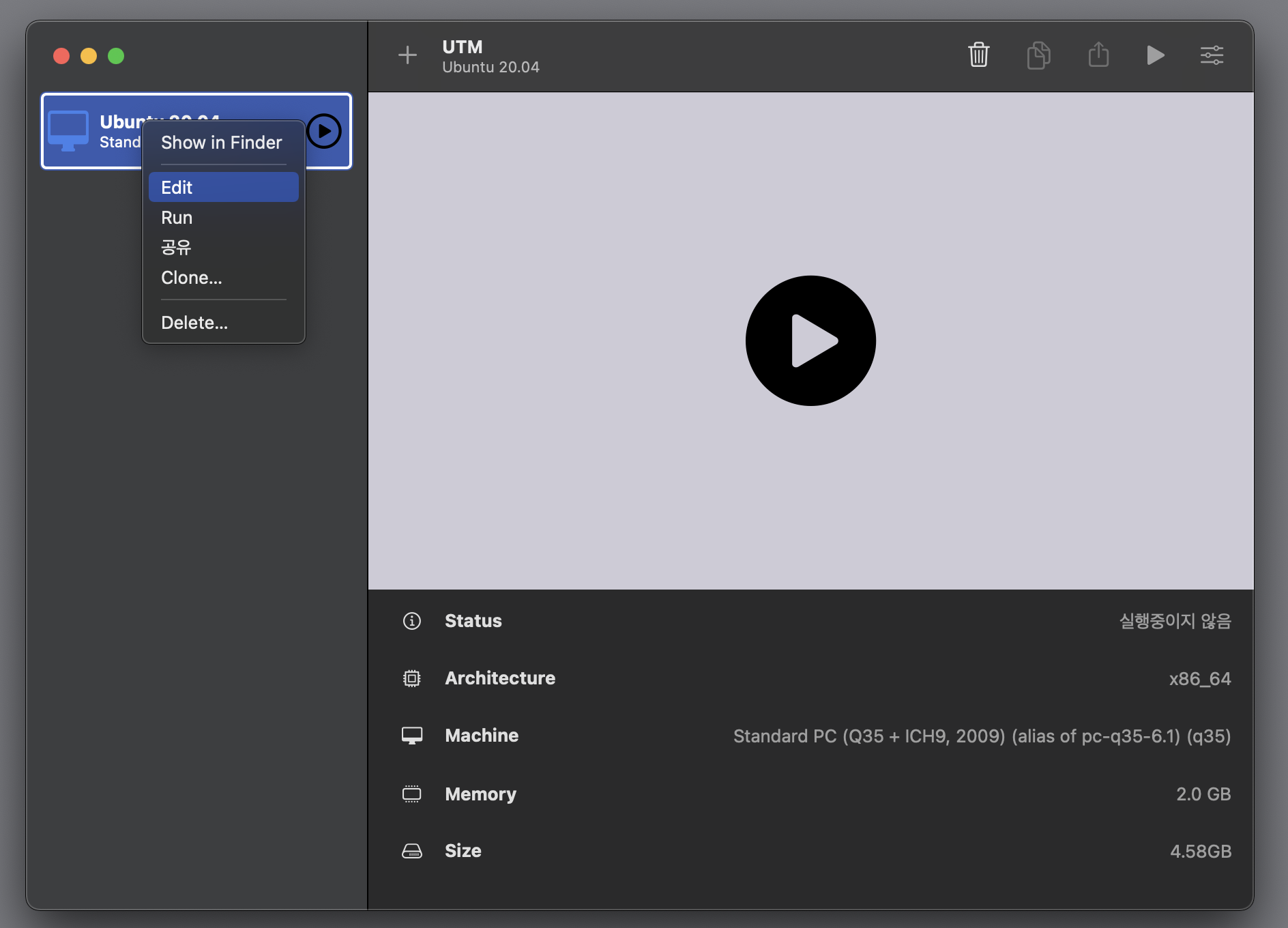 결론적으로 저는 UTM이라는 가상머신 플랫폼을 사용하기로 했습니다.