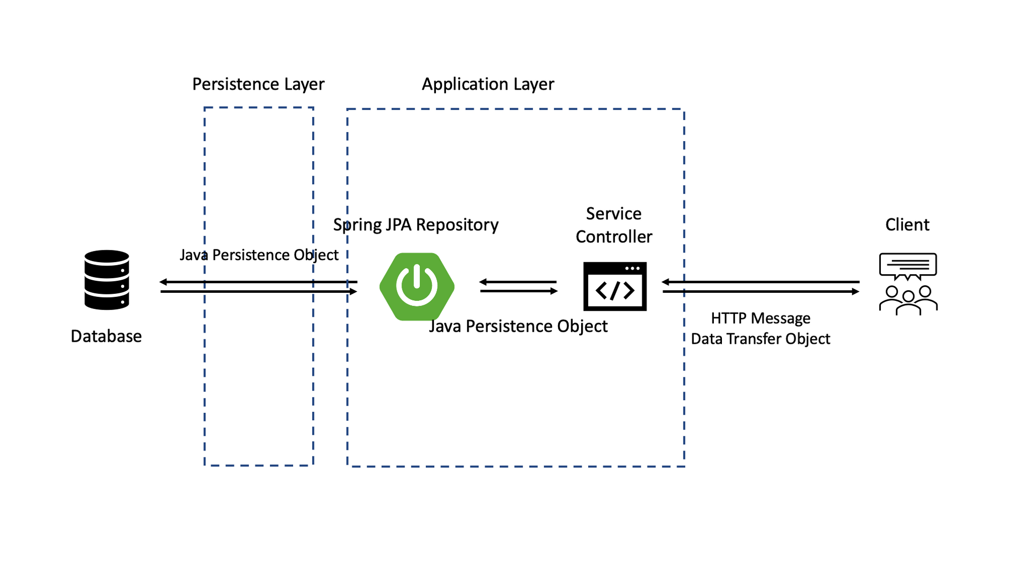 쉽게 말하여 Application 레벨에서 Database 와의 데이터 조회 및 갱신은 Entity 객체로 이루어져야 되는 것이고, View 또는 데이터가 보여지는 즉 Client와 데이터를 주고 받는 영역에서 DTO 클래스를 통해 이루어져야 됩니다.