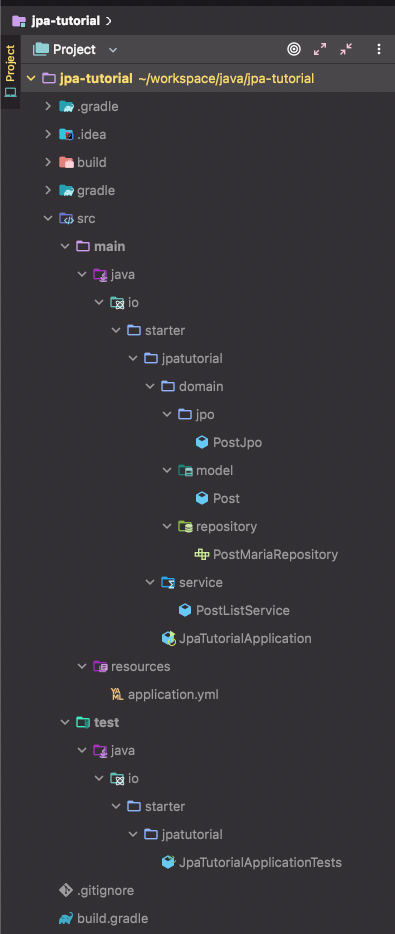여기까지 작성이 되고난 후 현재의 프로젝트 패키지 구조는 아래와 같습니다.