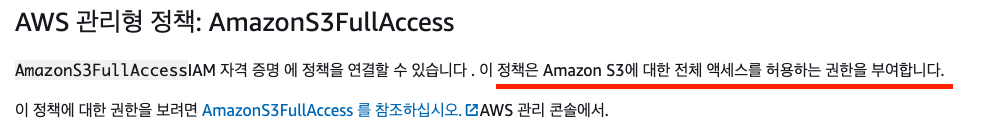 정책으로 AmazonS3FullAccess를 설정해줍니다.